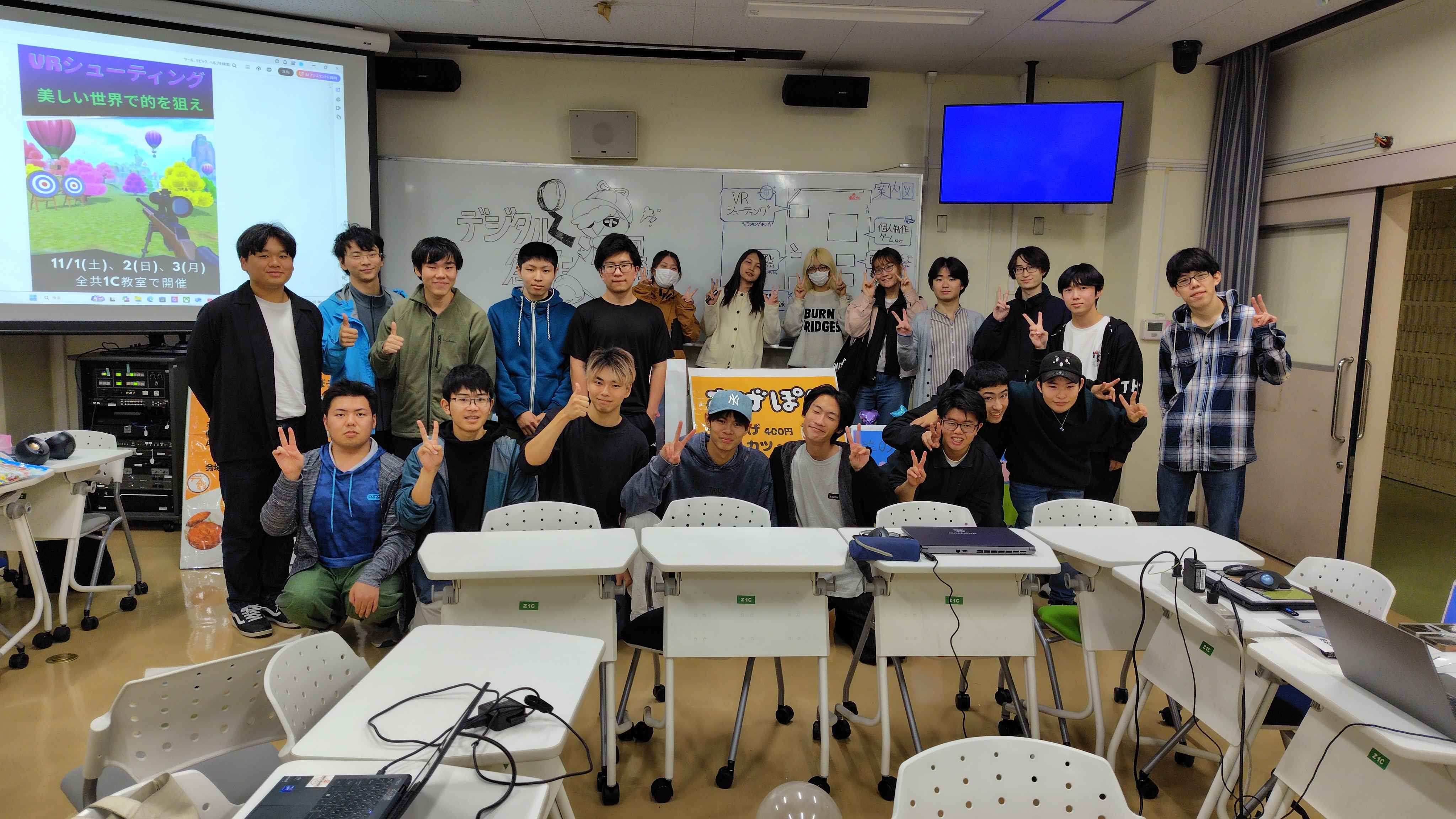 屋内展示は全共1C教室、模擬店はバス停と丸池の間で開催しています。